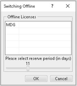 1.4) Aparecerá a janela “Switching Offline”, que nos mostra as licenças ativas na sessão que iremos extrair para o computador, assim como a duração em dias que pretendemos trabalhar offline.