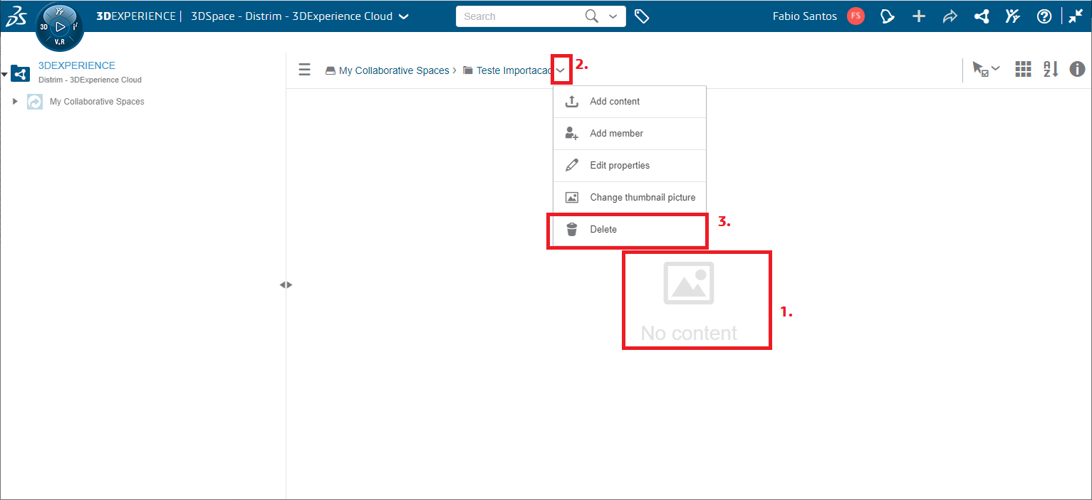 Verificar se o espaço colaborativo está vazio (que diga “No Content”)