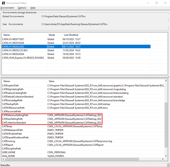 Ir ao ‘Environment Editor’ da versão que pretendemos entrar como administrador e colocar o mesmo caminho para as seguintes variáveis: