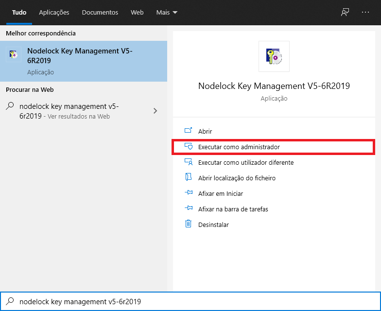 1. No menu do Windows, procurar por “Nodelock Key Management [VERSAO DO CATIA]” e executar como administrador.