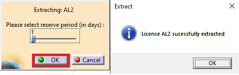 4. Definir o período de extração (de 1 a 30 dias), ou seja, quanto tempo queremos aquela licença extraída para o nosso computador e carregar no botão “OK”. Se tudo correr bem apresentará uma mensagem a dizer que o processo de extração foi concluído.