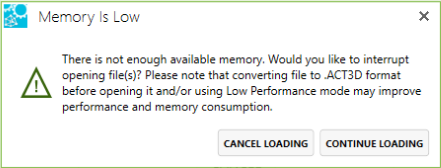 Com a opção ‘Mostrar aviso de memória’ ativada nas definições, os utilizadores são agora avisados quando a memória do sistema fica baixa, o que lhes permite cancelar o carregamento de um ficheiro.